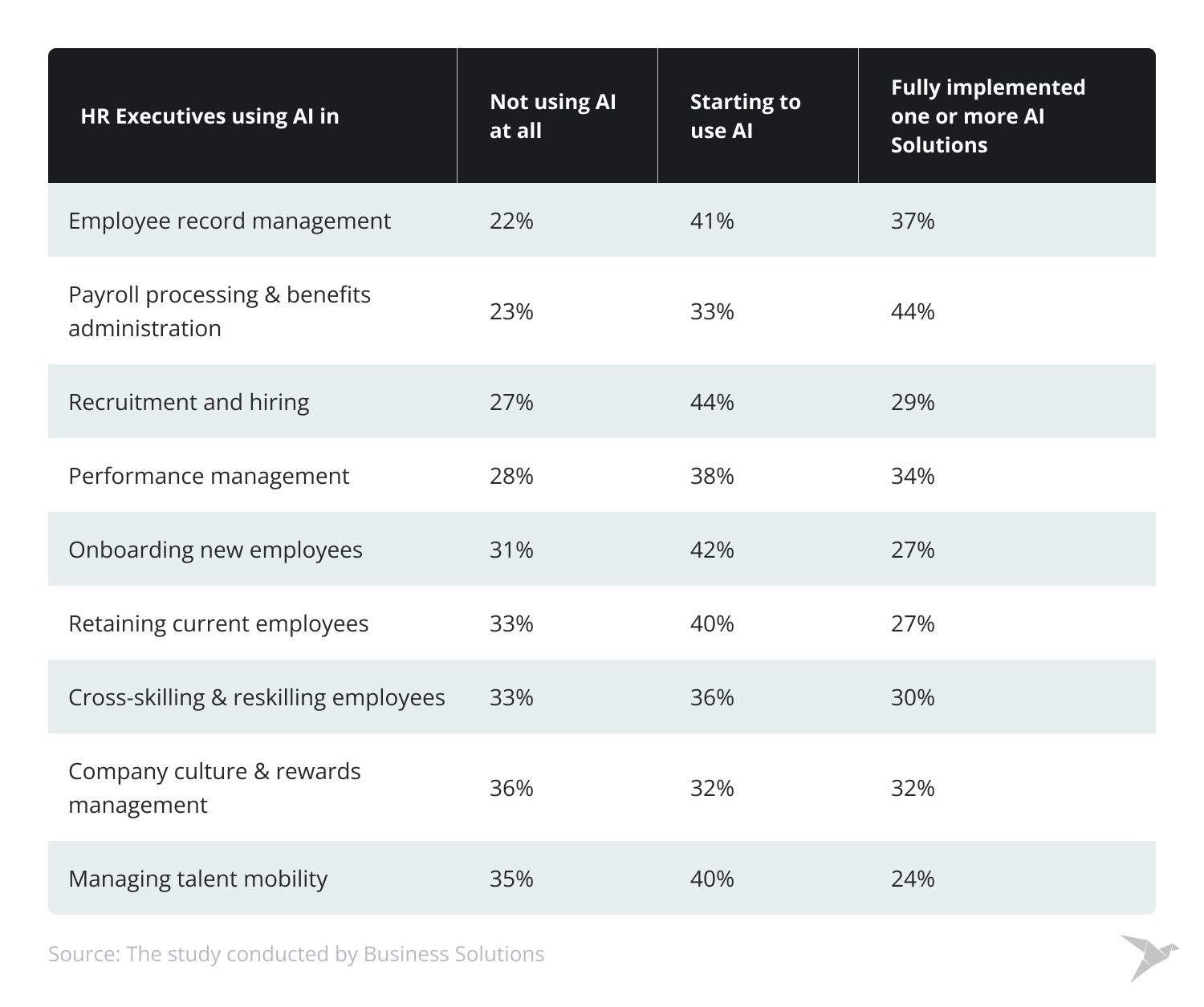 Here are the statistics on how AI is used in HR processes: