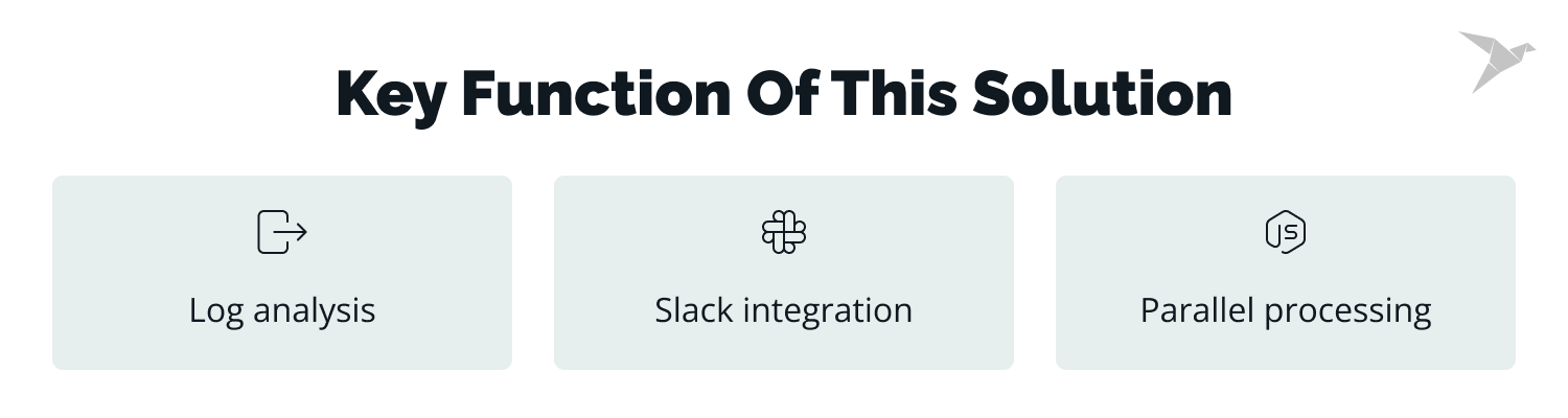 Utilizing Node.js worker threads, the lambda function processes AWS logs in parallel, significantly reducing the time required to review logs.