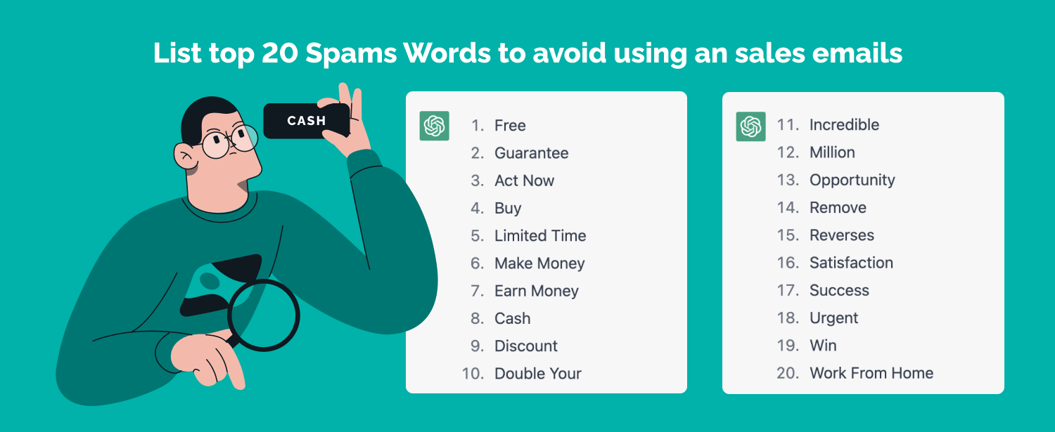 Avoid spam words: Use ChatGPT to be aware of "spam words" when compiling cold templates, as this can improve your messages' deliverability and engagement rates. A list of words that should not be used in messages can help ensure that filters do not flag your emails as spam.