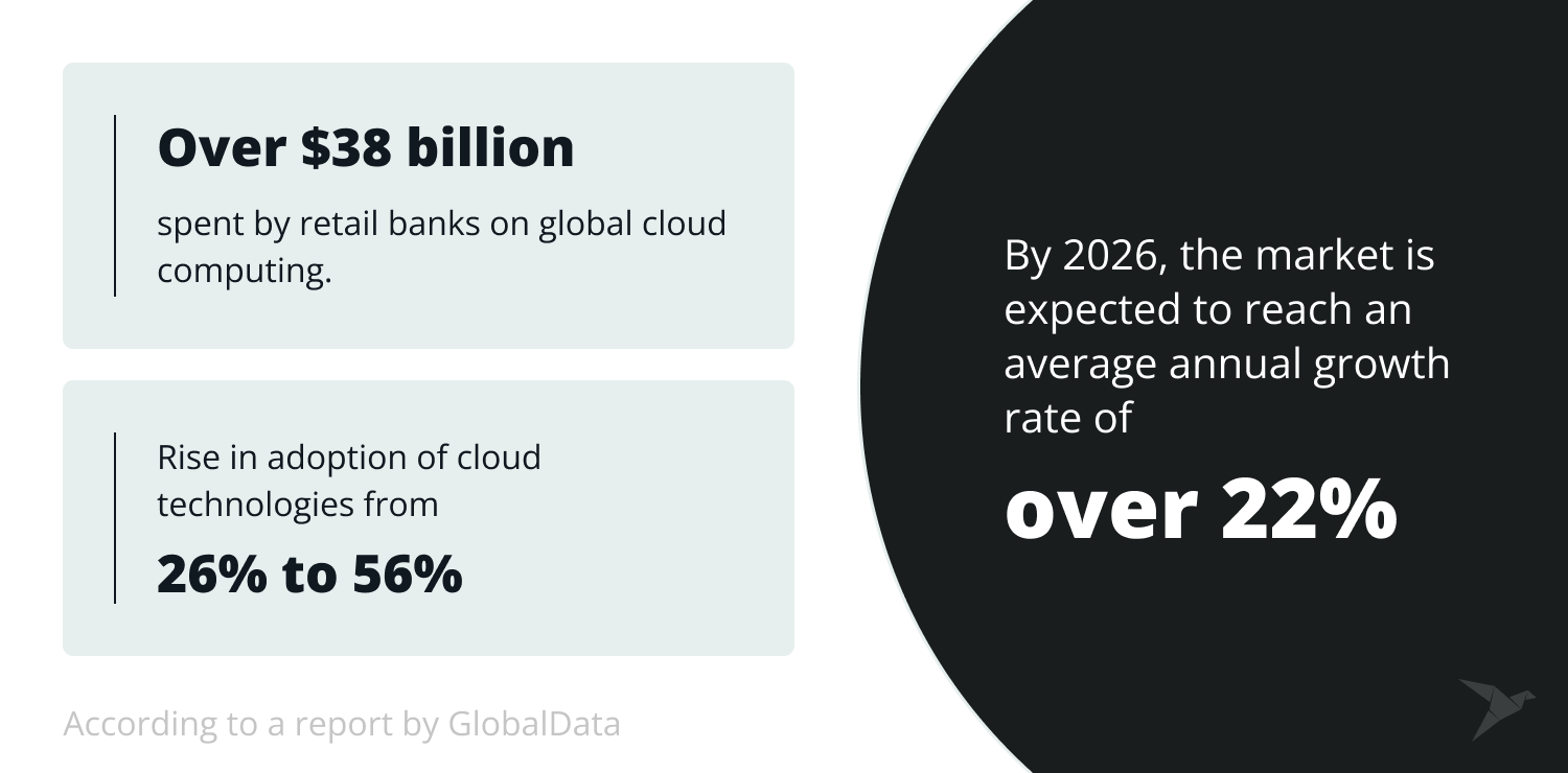 According to a report by GlobalData, retail banks spent more than $38 billion on global cloud computing. The market is expected to reach an average annual growth rate of over 22% by 2026.