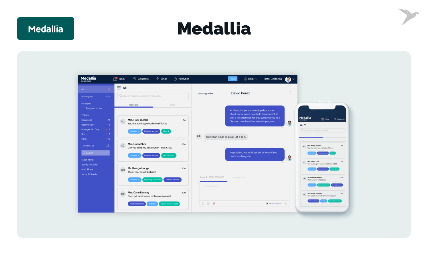 Zingle/Medallia helps hotels engage with guests across multiple messaging channels, including email, SMS, and social media. This platform makes it easier for guests to request services and for staff to respond quickly, improving communication and guest satisfaction.