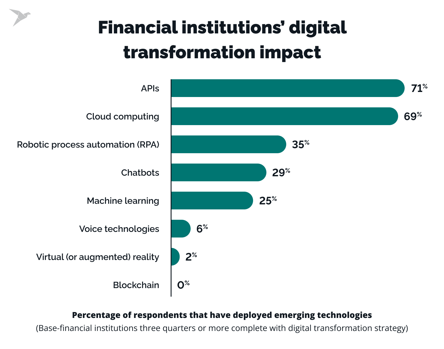 71% of financial institutions embarking on or having already completed their digital transformation journey have strategically deployed APIs.