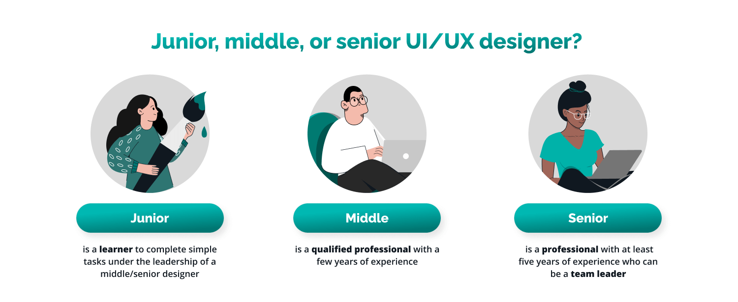 That said, different design tasks require different levels of skills from designers. So, if you have decided to hire a UX/UI designer, it’s necessary to understand what seniority level you’re looking for. We’ll cover this next.