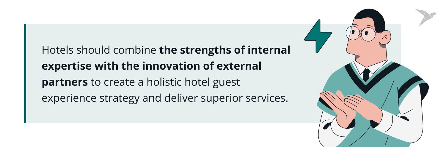 Hotels should combine the strengths of internal expertise with the innovation of external partners to create a holistic hotel guest experience strategy and deliver superior services.