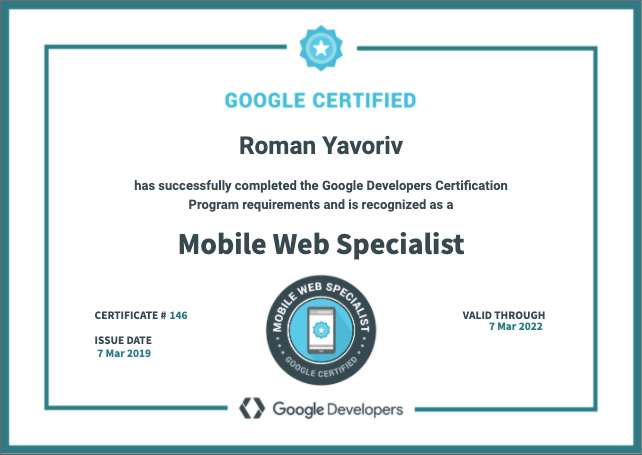 Last year I decided to take the Google Mobile Web Specialist Course and Certification. In this article, I will describe my preparation and give some useful tips for those interested in acquiring this mobile web developer certification.