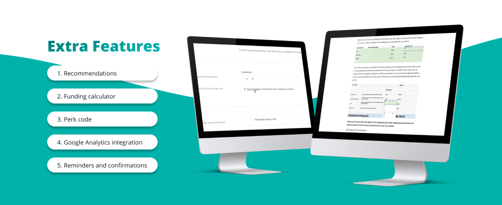Some additional features can help you stand out among the competitors and help your creators successfully raise funds. The most popular and easy to implement ones are: