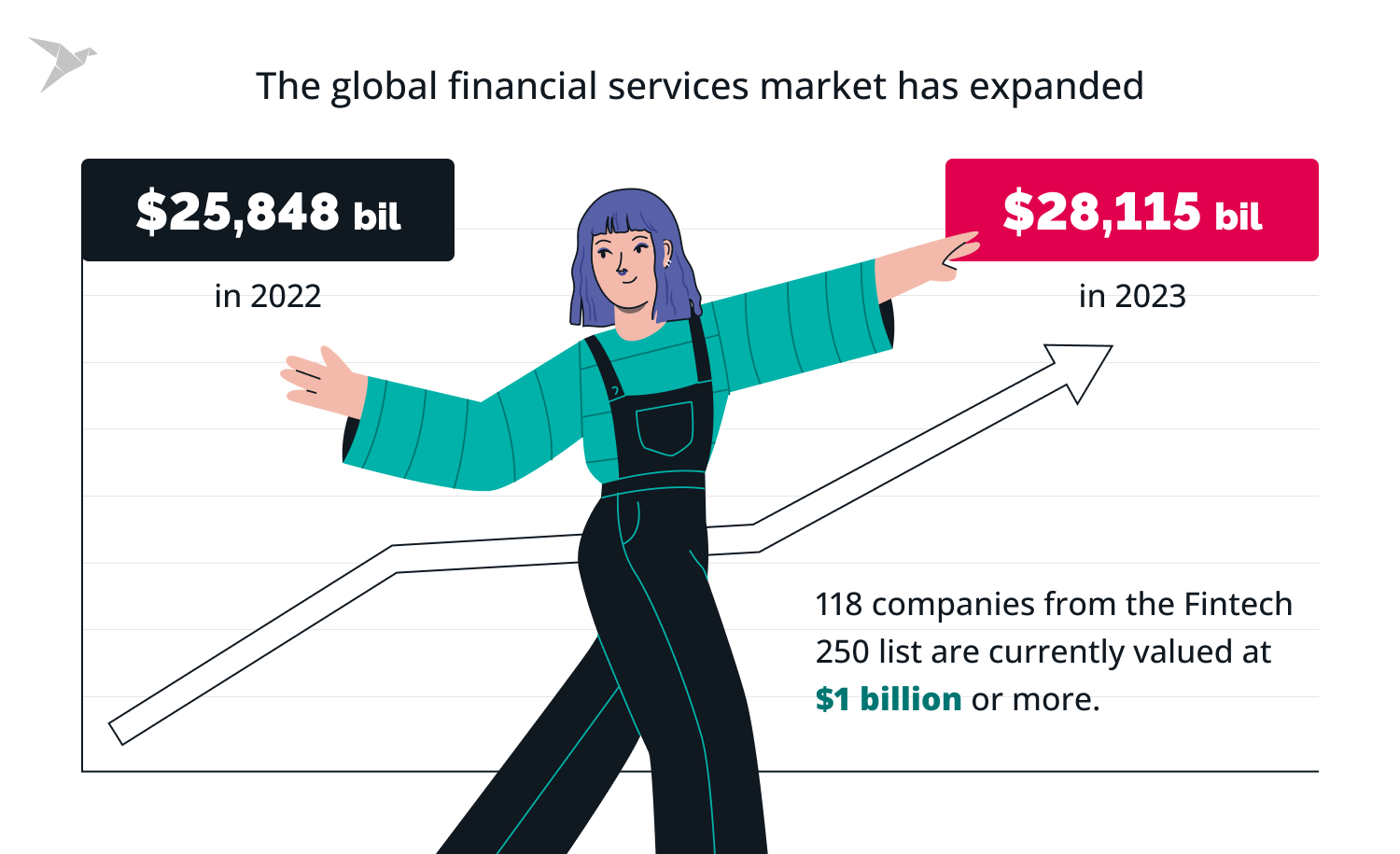 While the fintech industry has seen remarkable growth with a surge in the number of companies, it's important to note that the market is not oversaturated. To emphasize the vibrant dynamics of this sector, let's delve into some noteworthy statistics: