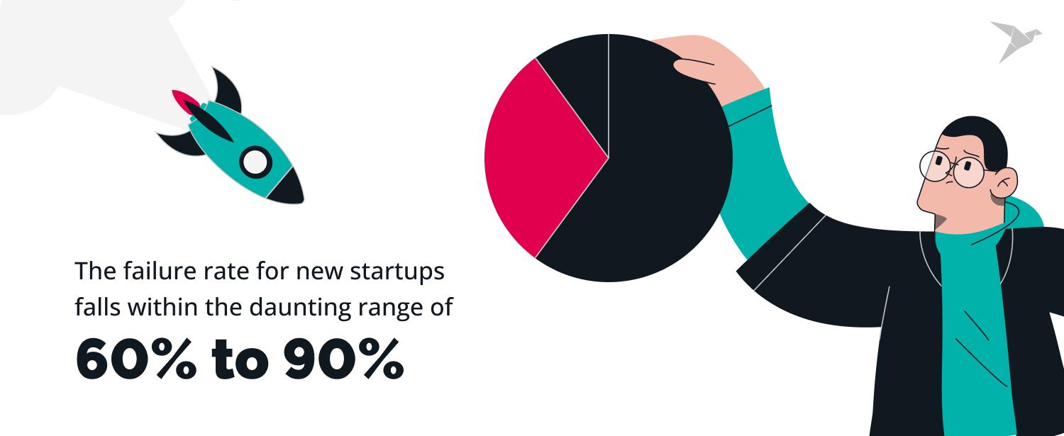 While success stories like Mint, Stripe, and Revolut shine brightly, the reality is that many fintech startups don't make it. The failure rate for new startups falls within the daunting range of 60 to 90 percent. In simpler terms, only around 3 out of every 10 startups will celebrate their 10th anniversary.