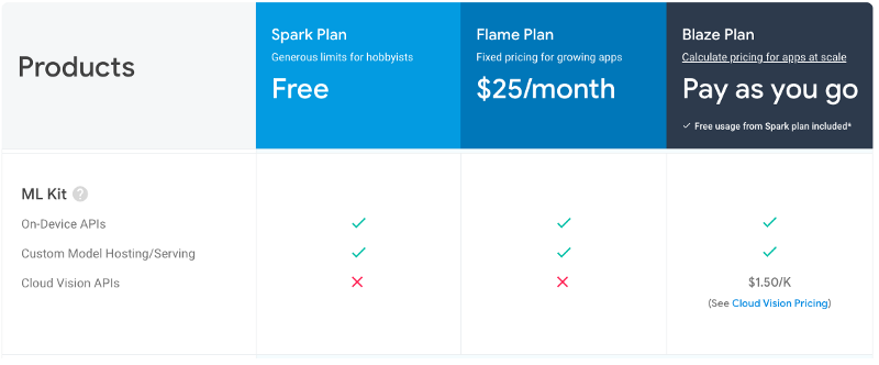 Here is an important part, cloud features are billable and pricing details can be found via this link: https://firebase.google.com/pricing. But as soon as all your logic is on the client side, you should be good to use it as much as you can. Still, if you want to try Cloud-based recognition, you can choose Blaze Plan and have 1000 calls/month for free.