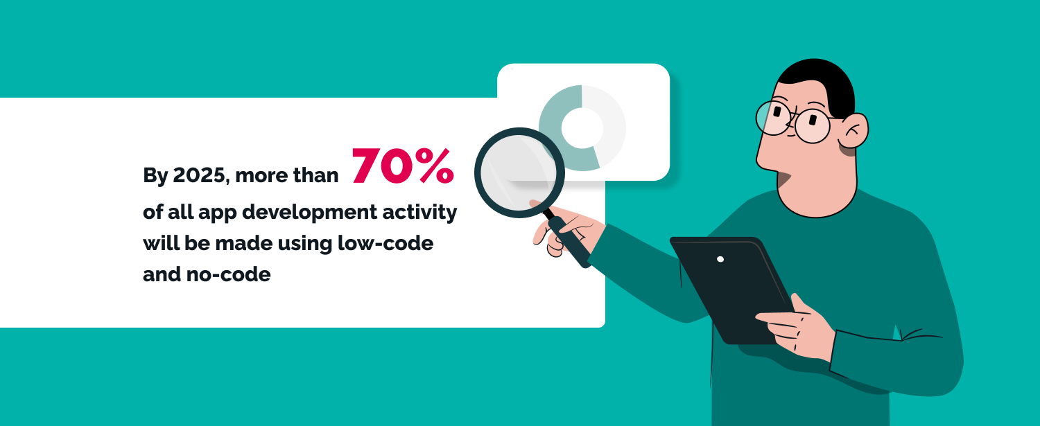 Big development teams are expensive with front- and back-end developers, UX/UI designer, BA and Project Manager. Low-code no-code allows them to be replaced, which means that businesses will be able to allocate resources to other needs. Moreover, as it speeds up the work process, the company saves man-hours, which leads to increased revenue in the long run.