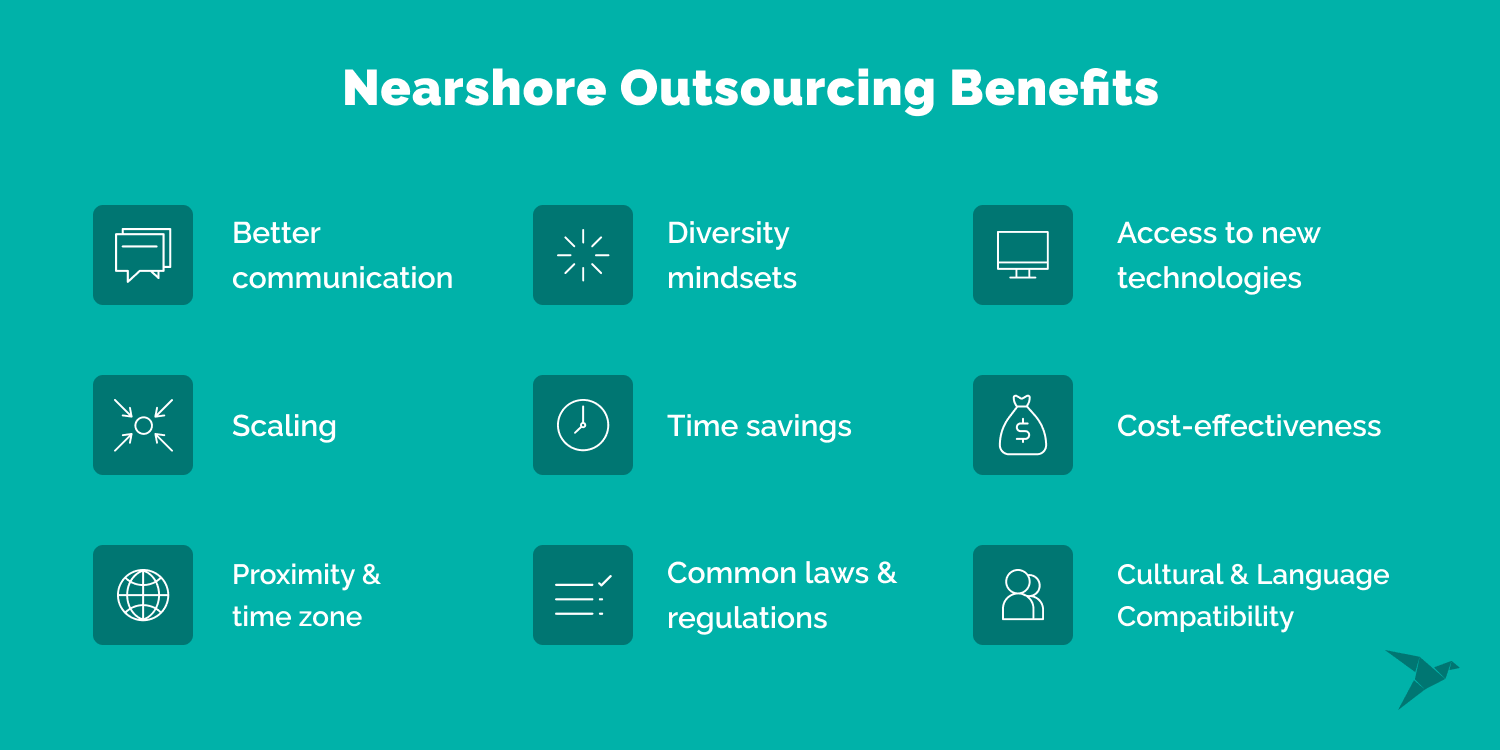 - If you plan to scale your business rapidly, nearshore outsourcing can help you add new features and functionalities without delays.