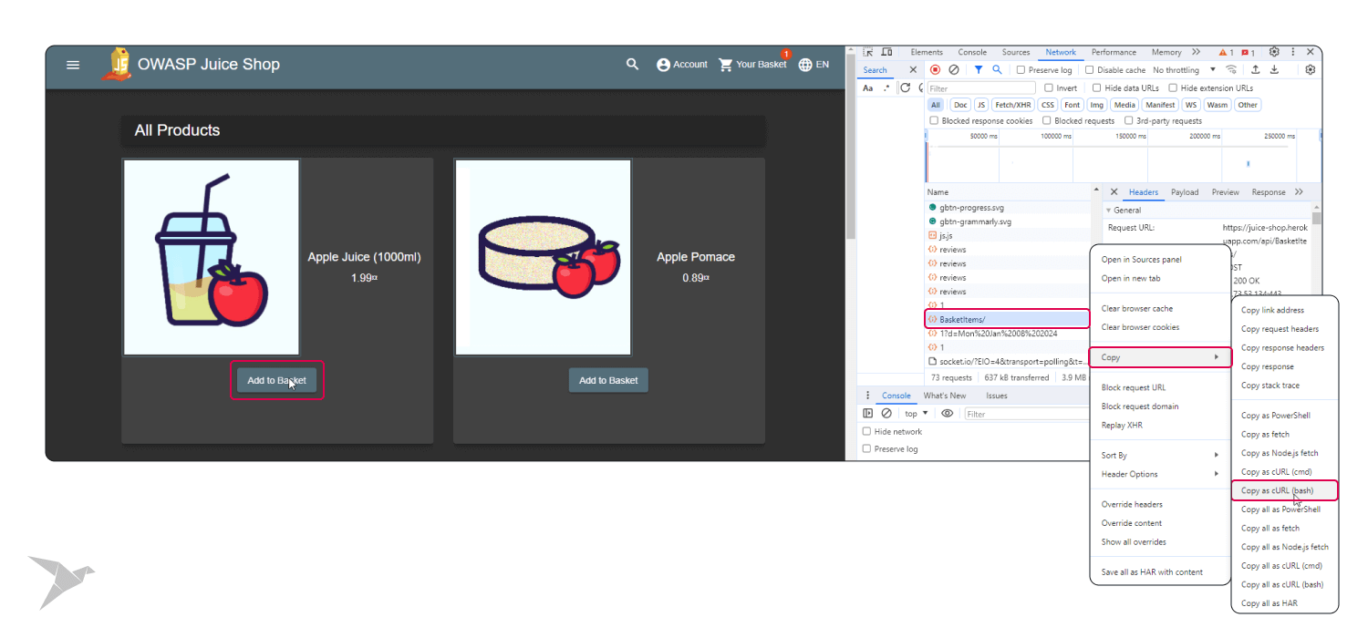 Identify instances where the application fails to enforce proper access control, potentially enabling manipulation of others' data. For instance, the predictability of basket IDs might allow adding products to other users' baskets, highlighting a potential vulnerability.