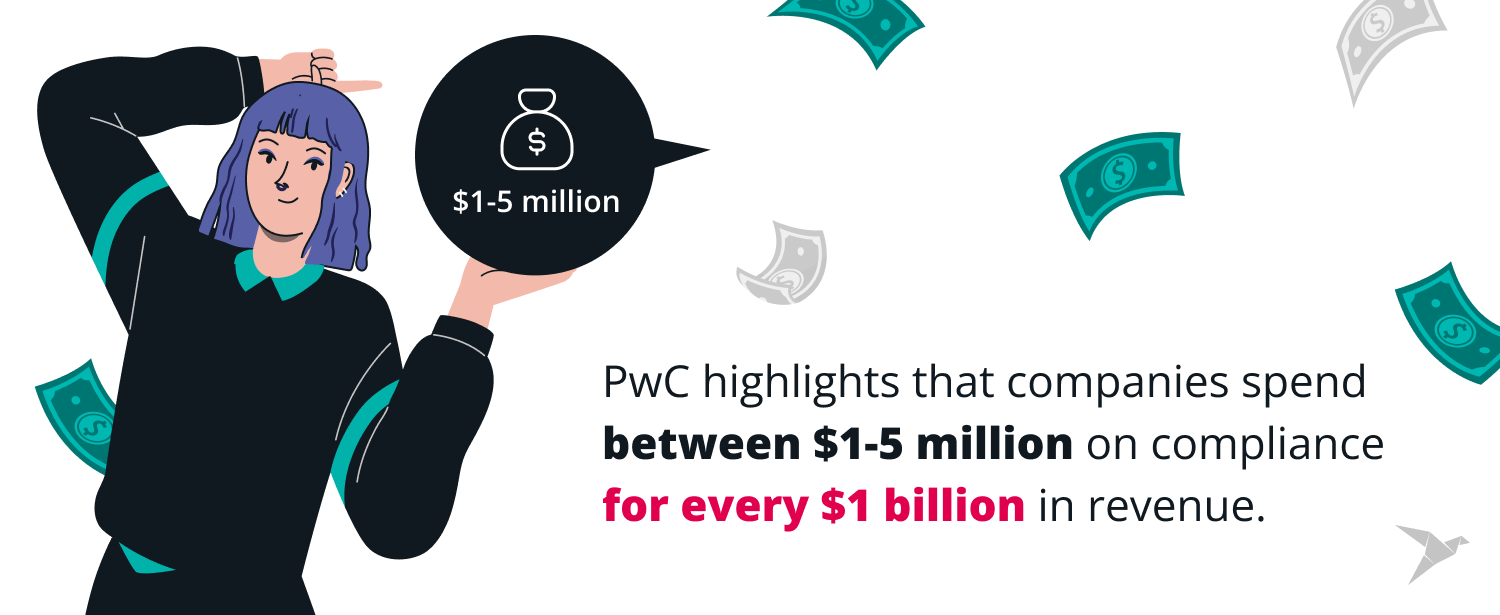 PwC highlights that companies spend between $1-5 million on compliance for every $1 billion in revenue.