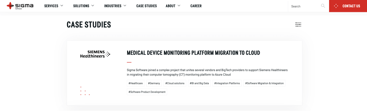 Sigma Software offers wide services in software development, mobile, and web application development, as well as quality assurance support and staff augmentation. They have experience working with clients across various industries.