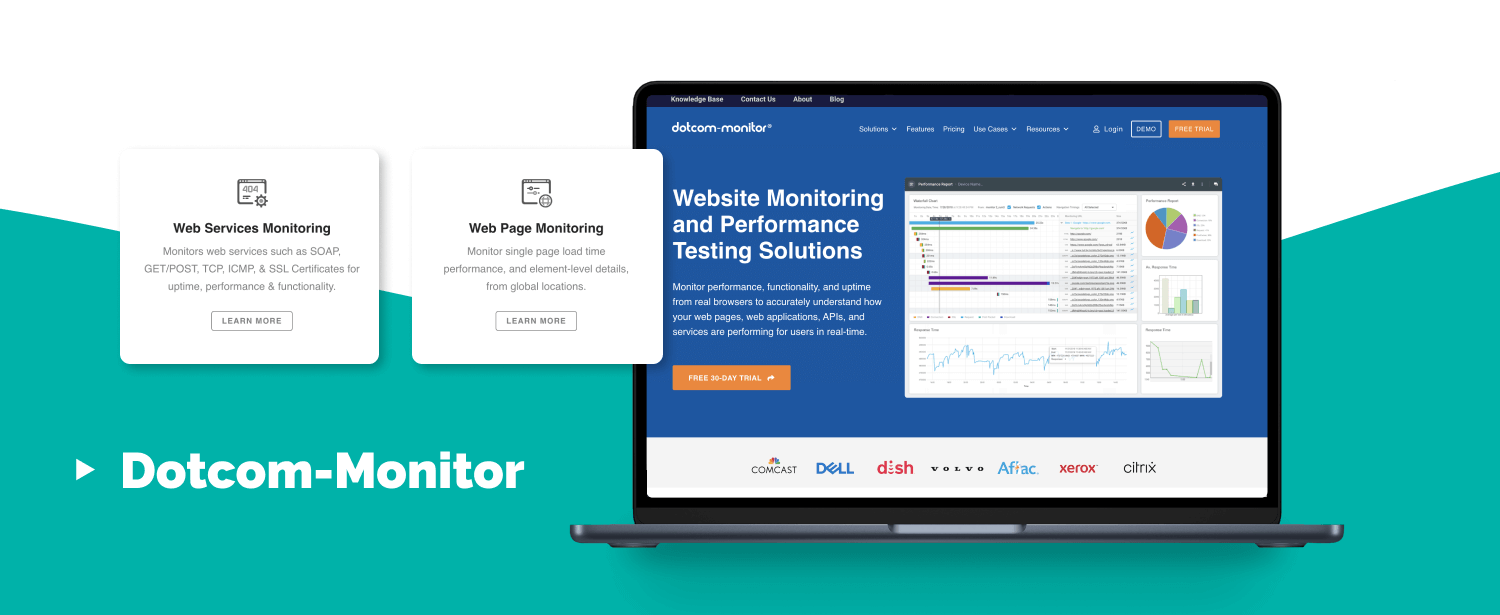 Dotcom-Monitor's most prolific users are Dell, Comcast, and Dish.