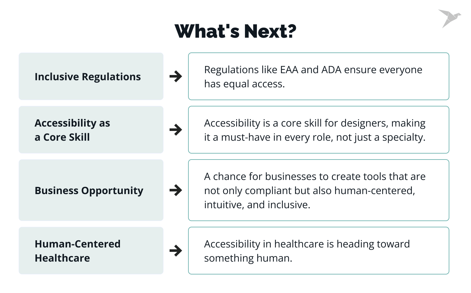 The takeaway? Accessibility in healthcare is heading toward something human. It’s about tools that don’t just work but feel right: intuitive, inclusive, yours.